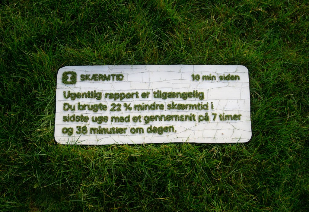 Stentøj, glasur, kunstgræs, træ og fugemasse, 110 x 45 cm, 2020.